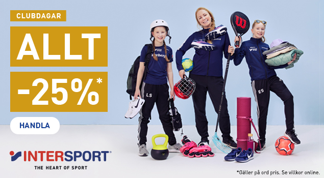 Mellan den 22/3 - 2/4 har vår samarbetspartner Intersport 25% på allt i butik och på intersport.se, ett perfekt läge att köpa det ni behöver för vårens alla aktiva dagar.