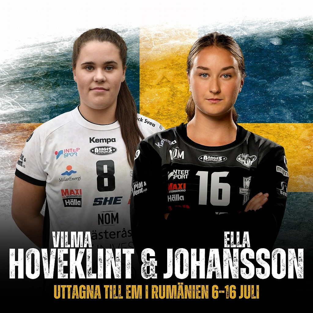 U19-damerna åker till Rumänien i början av juli för att spela EM. Förbundskaptenen Jesper Östlund har i dag presenterat den svenska truppen där både Vilma Hoveklint och Ella Johansson från VästeråsIrsta HF är uttagna.