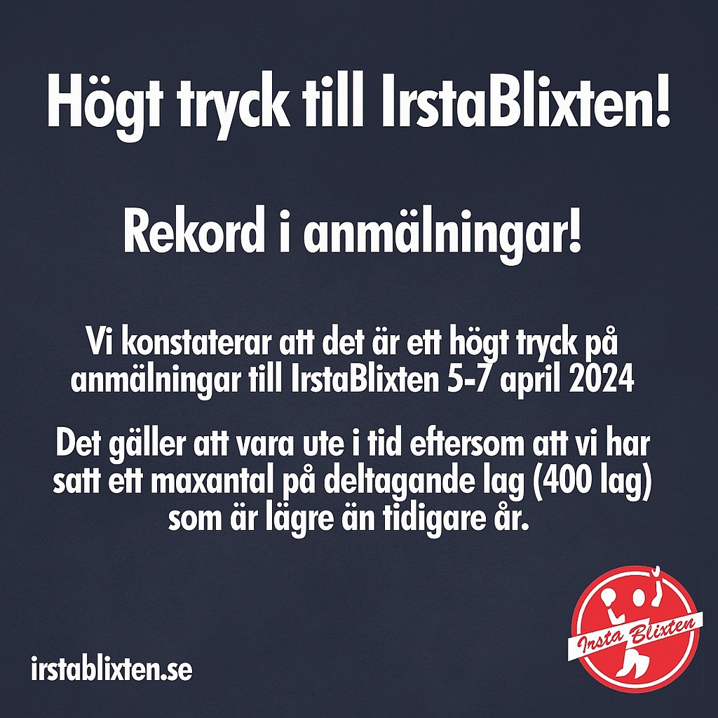 Anmäl ditt lag redan idag: https://irstablixten.cups.nu/
