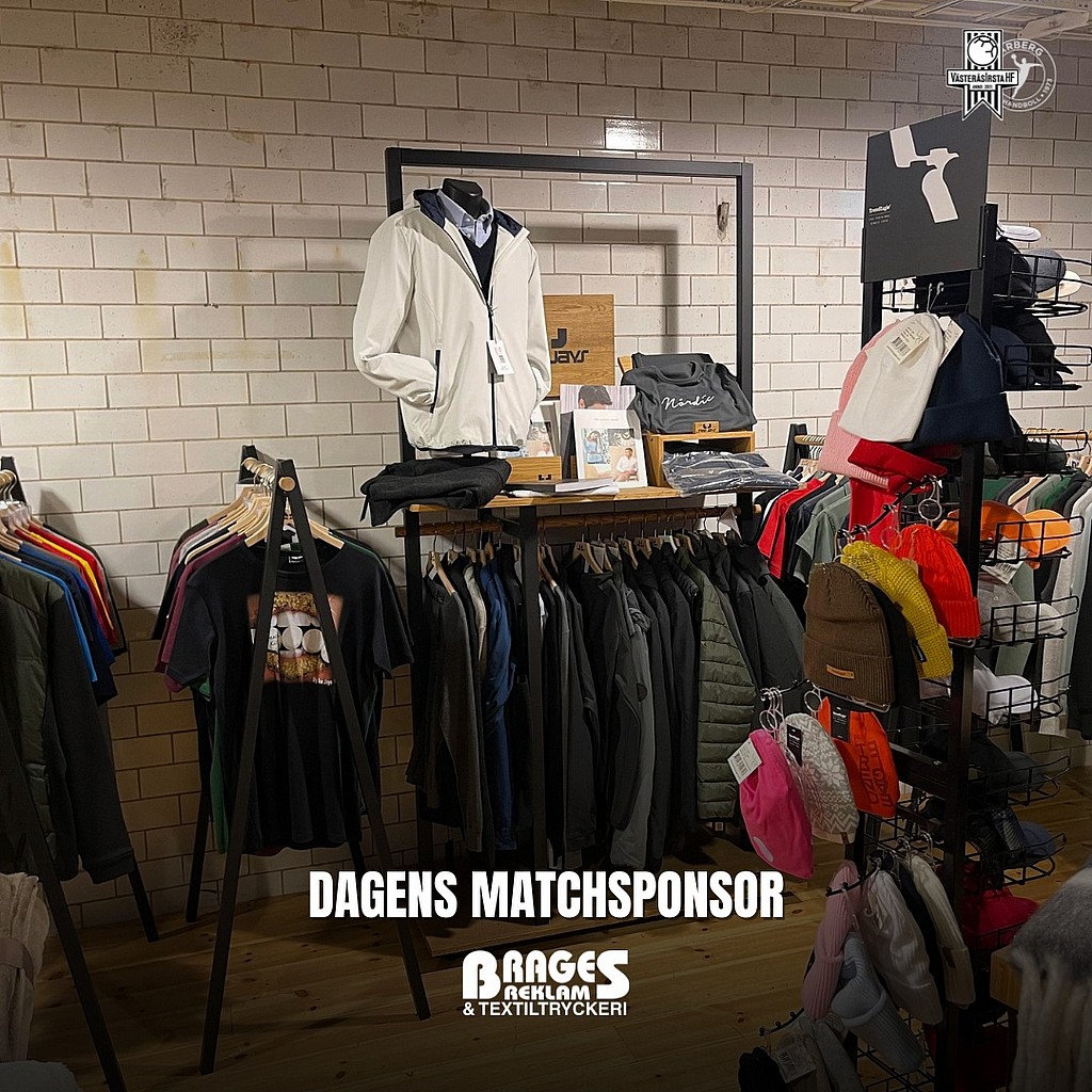 Dagens hemmamatch mot HK Varberg presenteras av Brages Tryckcenter. Brages Tryckcenter AB grundades 1983 och är ett familjeföretag med inriktning på textiltryck samt klädförsäljning för tryck. Företaget har ett nära samarbete med VästeråsIrsta HF och de största idrottsklubbarna i Västmanland.