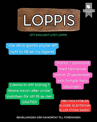I samband med matchen kommer även "loppisen" att starta upp. Har du något hemma som kanske skulle kunna få en ny ägare, ta med och lämna in vid shopen så får DU se matchen GRATIS!
