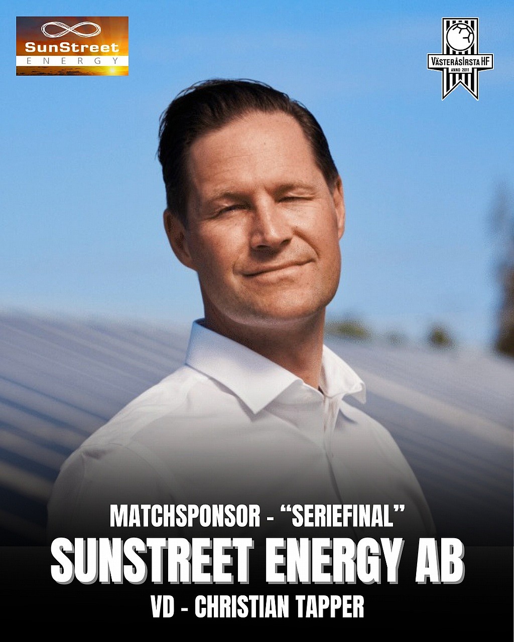 VI är mycket glada över matchsponsorn till onsdagens ”seriefinal” för herrarna är SunStreet Enery AB. De kommer arrangera en företagsträff där bla huvudtränare Axel Morén kommer presentera en genomgång om matchen. Sportchef Mattias Zachrisson och Norges landslags assisterande tränare Martin Boqvist kommer intervjuas och därefter ladda ordentligt för att se herrarna vinna matchen!