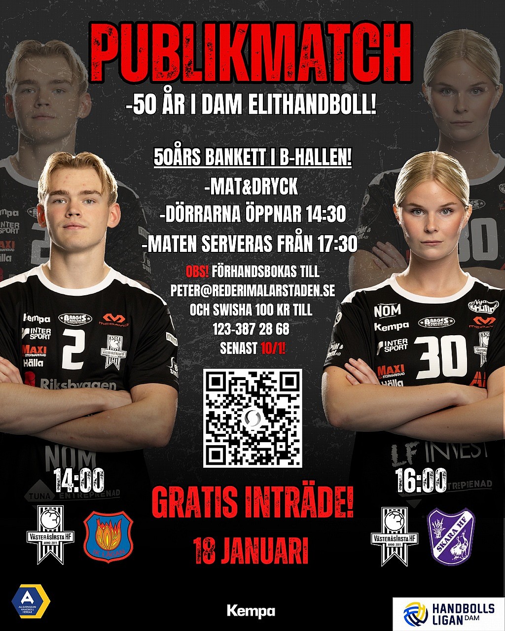 Vi firar 50år i dameliten! Kom och hylla våra damelit spelare och njut av god mat, dryck och framförallt bra handboll i Västerås Arena!