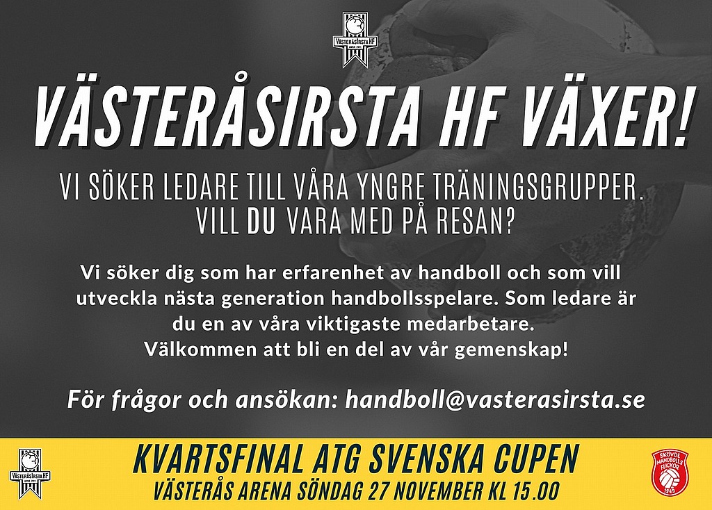 - Det här är viktigt för föreningen, då vi vill säkra den kvalitet som vi förväntas leverera till våra medlemmar och utövare. Vi vill därför förstärka vår organisation med fler ledare, säger Thomas Morén, klubbchef VästeråsIrsta HF.