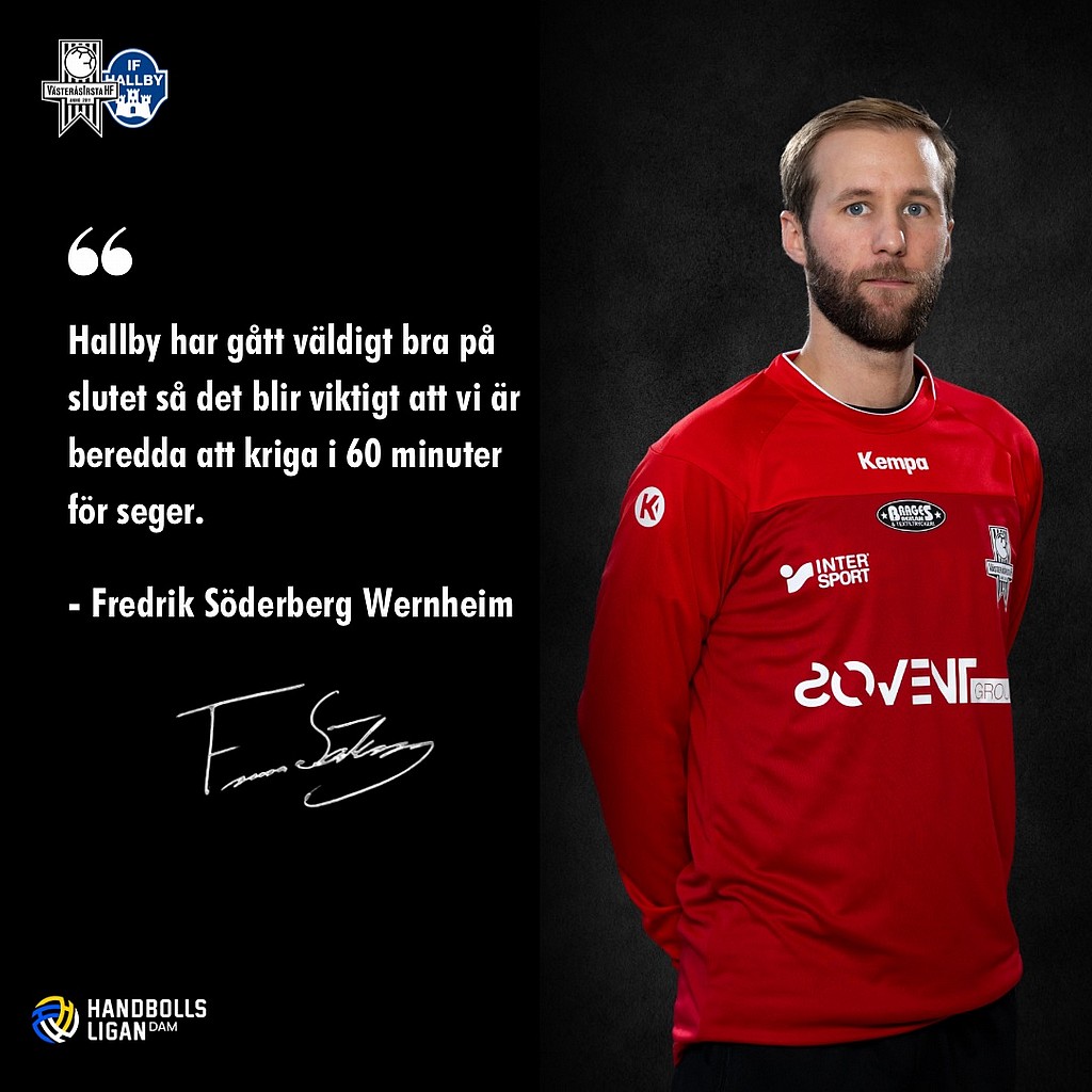 IF Hallby HK står för motståndet i dagens omgång av Handbollsligan. Fredrik Söderberg Wernheim delar med sig av sina tankar inför matchen.