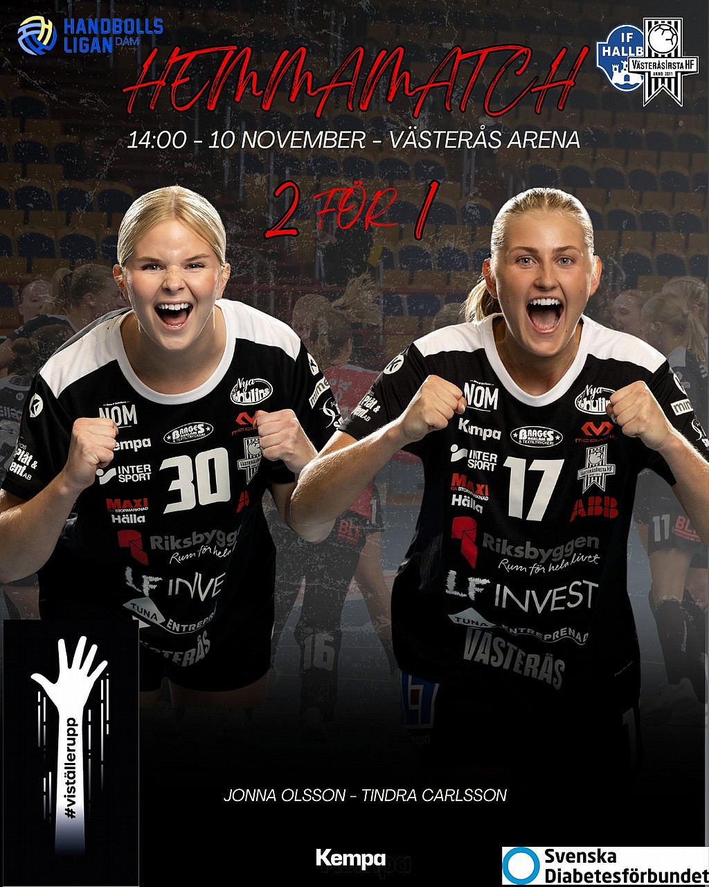 Dags för damerna att spela match i Västerås Arena när IF Hallby kommer på besök! Imorgon, söndag, 10/11 kl 14:00 är det som gäller och detta är en ”vi ställer upp” match där hela arrangemanget stödjs av Diabetesfonden!