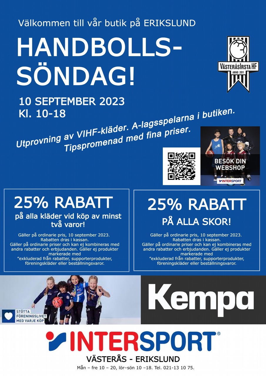 Söndag 10 september - IntersportdagenPlats: Intersport på ErikslundTid: 10.00-18.00A-lagsspelare på plats 11.00-15.00