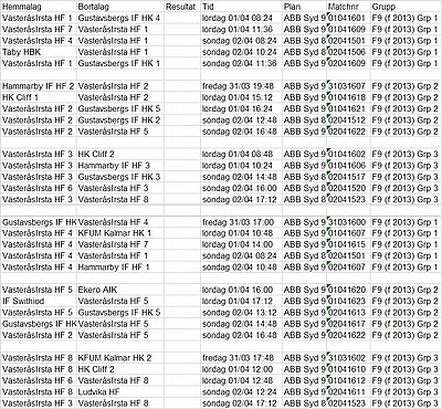 Länk till respektive lags spelschema finns annars här: