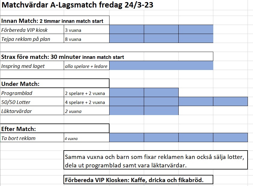 Match startar 19.00 och uppgifterna startar 17.00, se info i bilden.