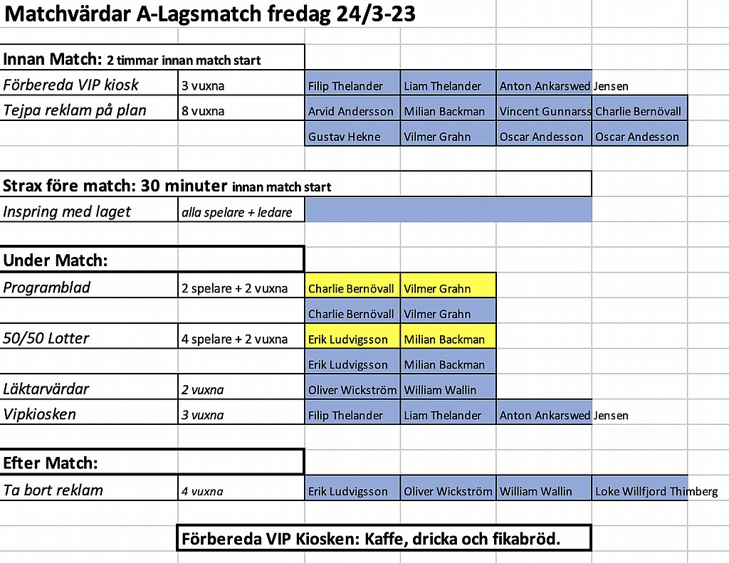 Hej!Gjort en arbetsfördelning av passen.Hör av er så fort som möjligt om ni av någon anledning vill ändra.