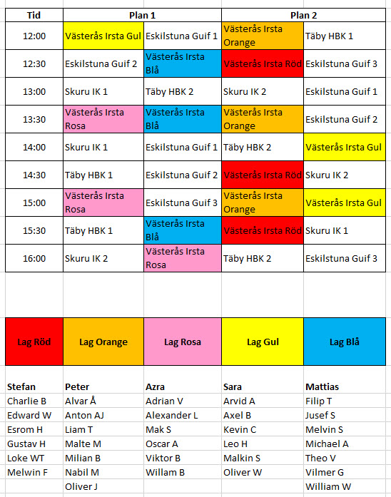 Här kommer spelschemat inför lördagens matchspel där vi gästas av Guif, Täby och Skuru.