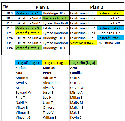 Här kommer spelschema och lagindelning för söndagens matcher i Eskilstuna.
