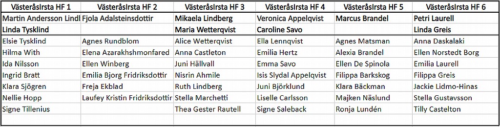 Anmälda lag : VästeråsIrsta HF F-13 (6 lag), Täby (1 lag), Örebro SK (2 lag), Göksten (2 lag), Eskil (1 lag), Eskilstuna GUIF (1 lag)