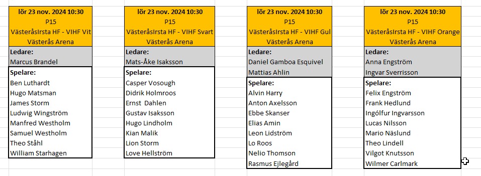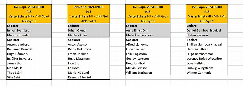 Här nedan följer lite praktisk info kring tider, träningar och annat nyttigt: